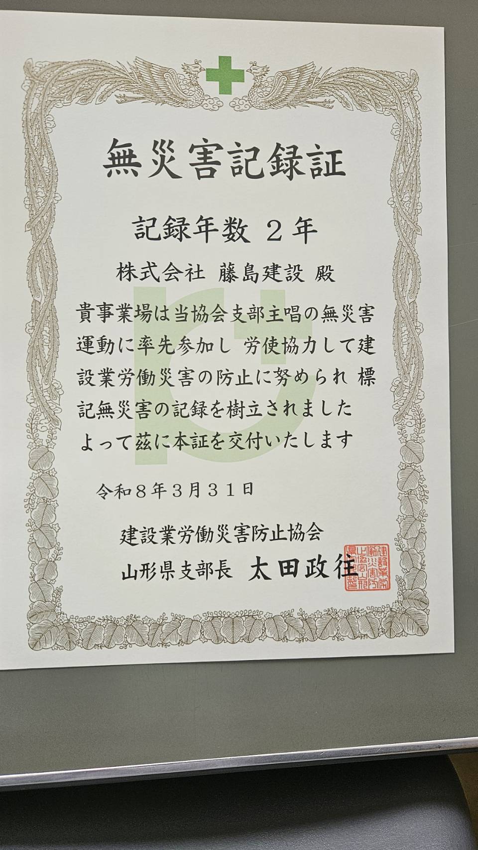 無災害記録達成しました